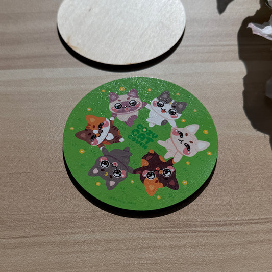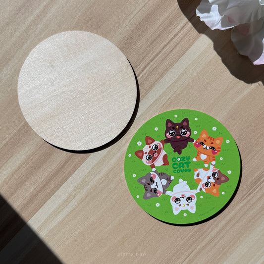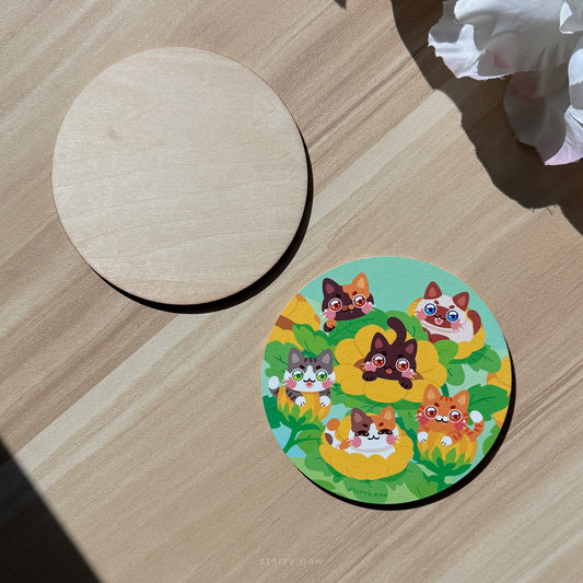 Sunflower Cats Wood Coaster 4"