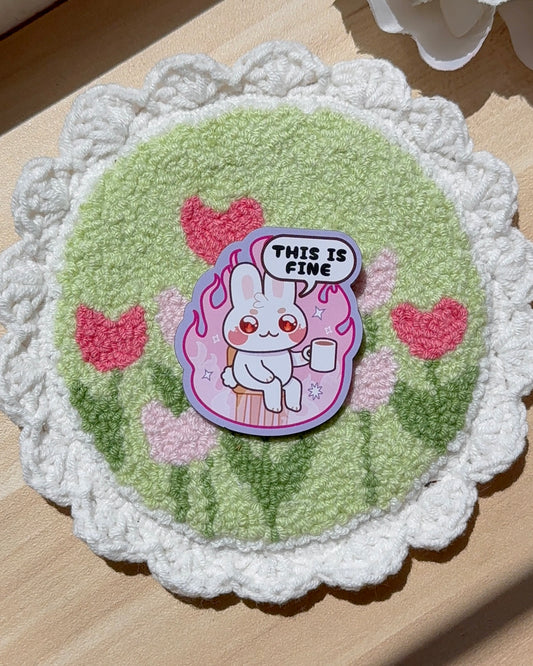 White Bunny This is Fine 2" Wood Pin