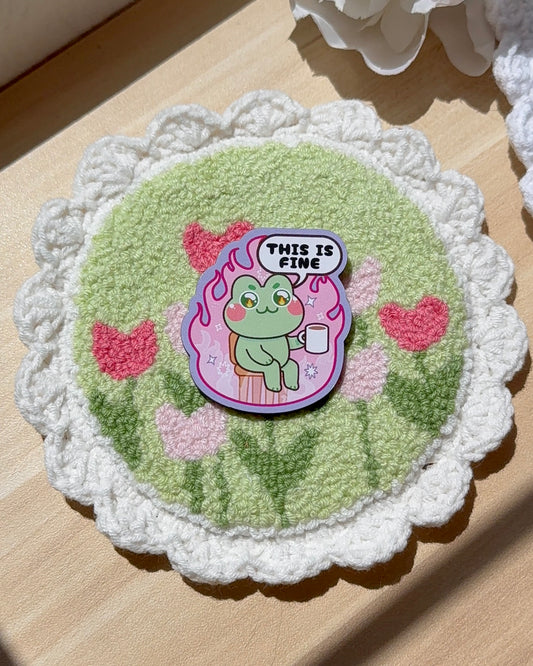 Wood Pin: Pink/Green Frog This is Fine 2" Pin