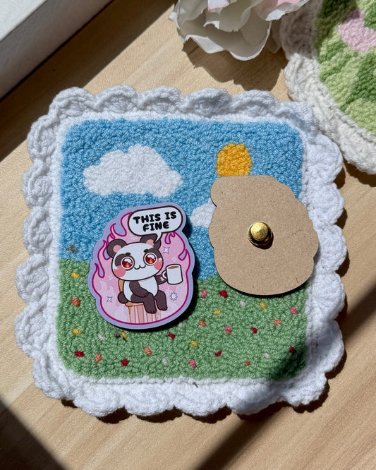 Panda This is Fine 2" Wood Pin