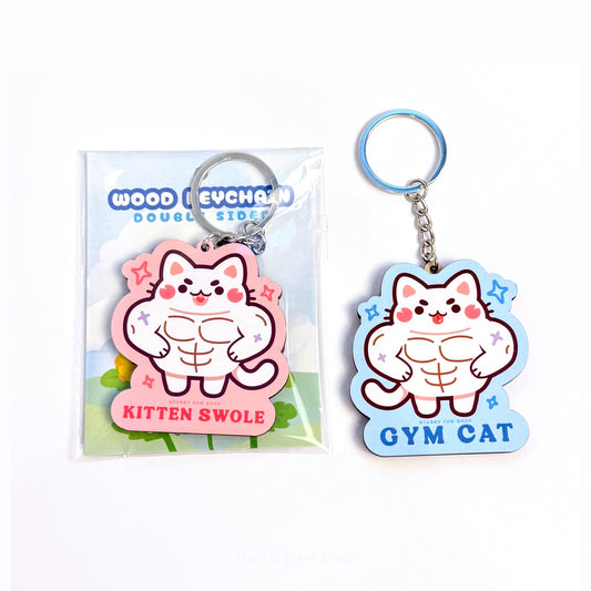 Buff Gym Cat/Kitten Swole Wood Keychain Double sided 2.5"