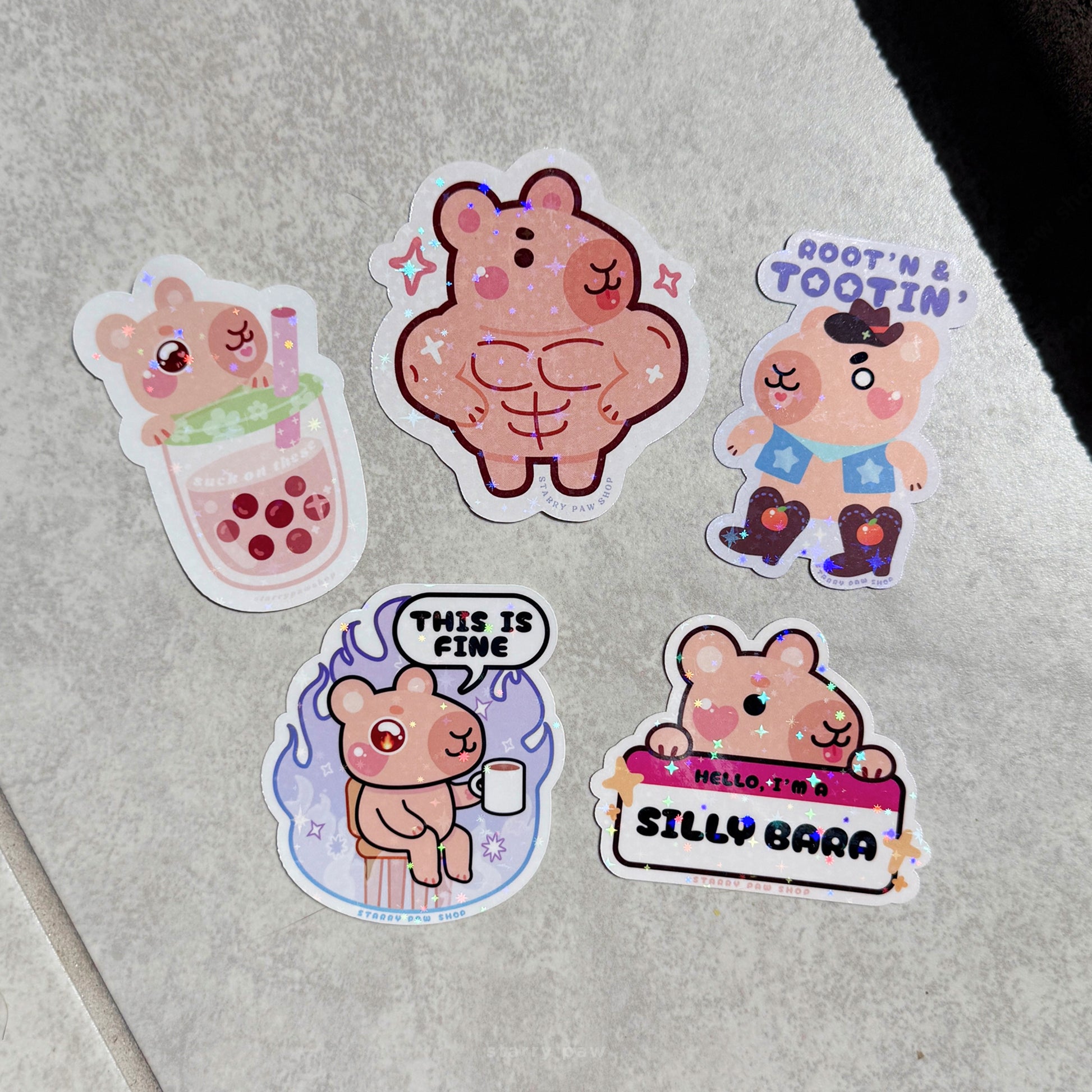 Choose your favorite Capybara sticker or collect them all! Approx 2.8 - 3 inches, water-resistant stickers. Perfect for sticking on notebooks, laptops or anywhere you need some froggy cheer.