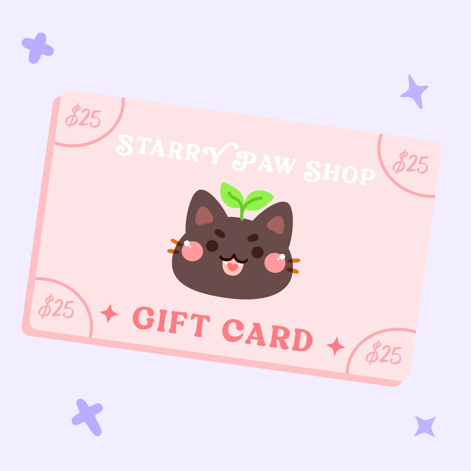 Starry Paw Shop digital gift cards are sent instantly by on purchase to the email entered at checkout. Easy!