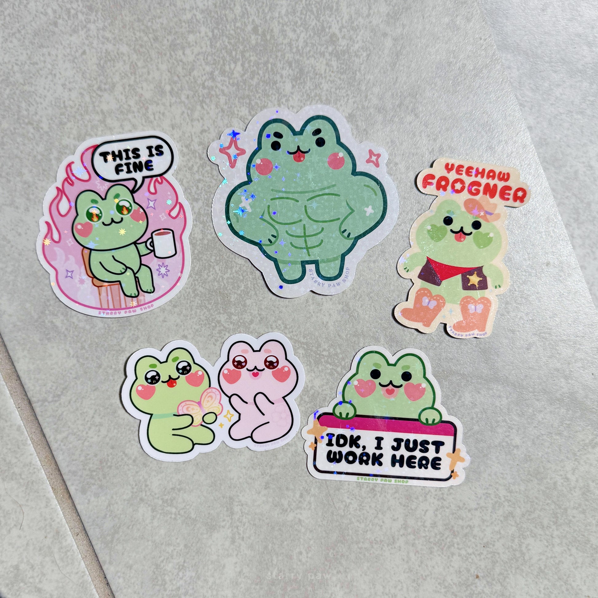 Choose your favorite frog sticker or collect them all! Approx 2.8 - 3 inches, water-resistant stickers. Perfect for sticking on notebooks, laptops or anywhere you need some froggy cheer.