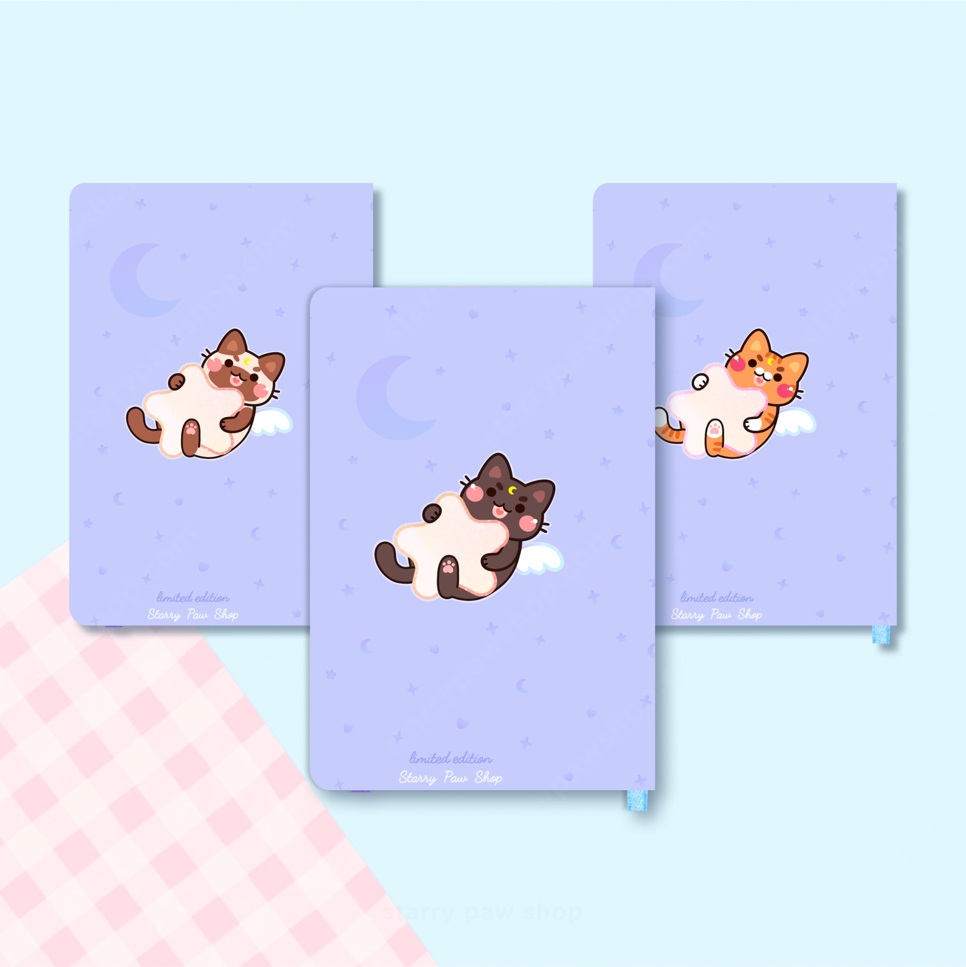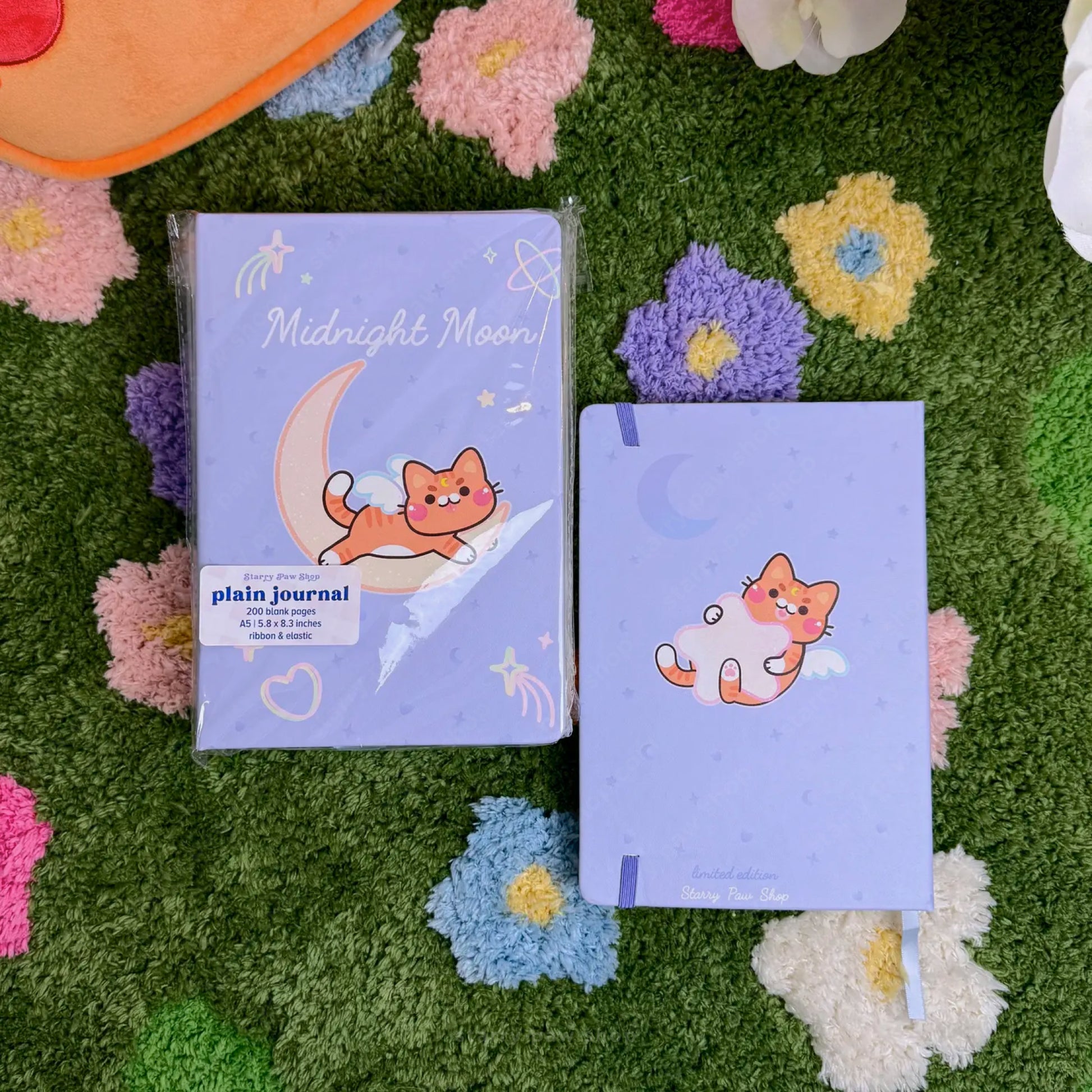 Moon Cat Journal A5 | Hardcover faux leather notebook 200pg