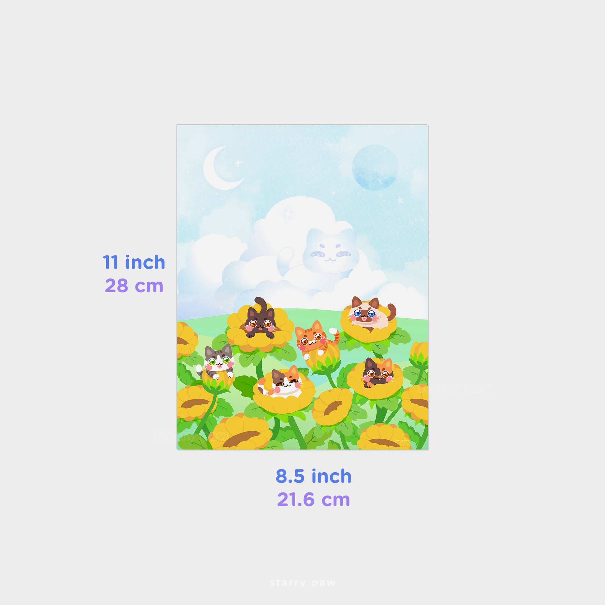 Sunflower Field Cat Print 8.5x11" Semi-Gloss